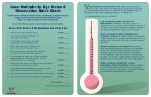 To what level does your client dissociate. All humans have the ability to dissociate. This human ability helps avoid extreme emotional and physical pain. Find out more about your clients and how much they may dissociate. Check ego states and use for psycho-education about inner multiplicity. This is great for limited sessions, and to see how to move forward with single event traumas. Talk about dissociation with your client as they answer these questions.