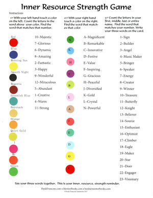 {"id":471645519902,"title":"Inner Resource Game Chart","handle":"inner-resource-game","description":"\u003cp\u003eA fun game to have in your waiting room, use with groups, or end a session. \u003c\/p\u003e\n\u003cp\u003eAlso, can be used to help stabilize clients after a difficult session by moving them from the right side of the brain to the left side by counting letters and numbers.\u003c\/p\u003e\n\u003cp\u003eMake an affirmation from the 3 positive words they selected. \u003c\/p\u003e\n\u003cp\u003eFlip the chart over and have them tap the colors and say the positive affirmation.\u003c\/p\u003e\n\u003cp\u003eWrite it on a card to take with them as a reminder.\u003c\/p\u003e\n\u003cp\u003eALL CHARTS COME WITH RESOURCE REMINDER CARDS\u003c\/p\u003e","published_at":"2018-01-10T10:46:12-08:00","created_at":"2018-01-10T10:59:16-08:00","vendor":"Mentor Books West","type":"","tags":["affirmations game","clinicians tools","inner resources","positive affirmations","positive game","positive gmae","resource","tools for clinicians"],"price":1000,"price_min":1000,"price_max":1000,"available":true,"price_varies":false,"compare_at_price":1500,"compare_at_price_min":1500,"compare_at_price_max":1500,"compare_at_price_varies":false,"variants":[{"id":6550328508446,"title":"Default Title","option1":"Default Title","option2":null,"option3":null,"sku":"","requires_shipping":true,"taxable":true,"featured_image":null,"available":true,"name":"Inner Resource Game Chart","public_title":null,"options":["Default Title"],"price":1000,"weight":6,"compare_at_price":1500,"inventory_quantity":30,"inventory_management":"shopify","inventory_policy":"deny","barcode":"","requires_selling_plan":false,"selling_plan_allocations":[]}],"images":["\/\/mentorstorenow.com\/cdn\/shop\/products\/img204.jpg?v=1534270169","\/\/mentorstorenow.com\/cdn\/shop\/products\/img200.jpg?v=1534270183","\/\/mentorstorenow.com\/cdn\/shop\/products\/img200_682d0a6d-c8f7-4b00-bcbc-afc84aeeaa45.jpg?v=1534270331"],"featured_image":"\/\/mentorstorenow.com\/cdn\/shop\/products\/img204.jpg?v=1534270169","options":["Title"],"media":[{"alt":null,"id":957171597415,"position":1,"preview_image":{"aspect_ratio":0.773,"height":3300,"width":2550,"src":"\/\/mentorstorenow.com\/cdn\/shop\/products\/img204.jpg?v=1534270169"},"aspect_ratio":0.773,"height":3300,"media_type":"image","src":"\/\/mentorstorenow.com\/cdn\/shop\/products\/img204.jpg?v=1534270169","width":2550},{"alt":null,"id":957172056167,"position":2,"preview_image":{"aspect_ratio":0.773,"height":3300,"width":2550,"src":"\/\/mentorstorenow.com\/cdn\/shop\/products\/img200.jpg?v=1534270183"},"aspect_ratio":0.773,"height":3300,"media_type":"image","src":"\/\/mentorstorenow.com\/cdn\/shop\/products\/img200.jpg?v=1534270183","width":2550},{"alt":null,"id":957174775911,"position":3,"preview_image":{"aspect_ratio":0.773,"height":3300,"width":2550,"src":"\/\/mentorstorenow.com\/cdn\/shop\/products\/img200_682d0a6d-c8f7-4b00-bcbc-afc84aeeaa45.jpg?v=1534270331"},"aspect_ratio":0.773,"height":3300,"media_type":"image","src":"\/\/mentorstorenow.com\/cdn\/shop\/products\/img200_682d0a6d-c8f7-4b00-bcbc-afc84aeeaa45.jpg?v=1534270331","width":2550}],"requires_selling_plan":false,"selling_plan_groups":[],"content":"\u003cp\u003eA fun game to have in your waiting room, use with groups, or end a session. \u003c\/p\u003e\n\u003cp\u003eAlso, can be used to help stabilize clients after a difficult session by moving them from the right side of the brain to the left side by counting letters and numbers.\u003c\/p\u003e\n\u003cp\u003eMake an affirmation from the 3 positive words they selected. \u003c\/p\u003e\n\u003cp\u003eFlip the chart over and have them tap the colors and say the positive affirmation.\u003c\/p\u003e\n\u003cp\u003eWrite it on a card to take with them as a reminder.\u003c\/p\u003e\n\u003cp\u003eALL CHARTS COME WITH RESOURCE REMINDER CARDS\u003c\/p\u003e"}